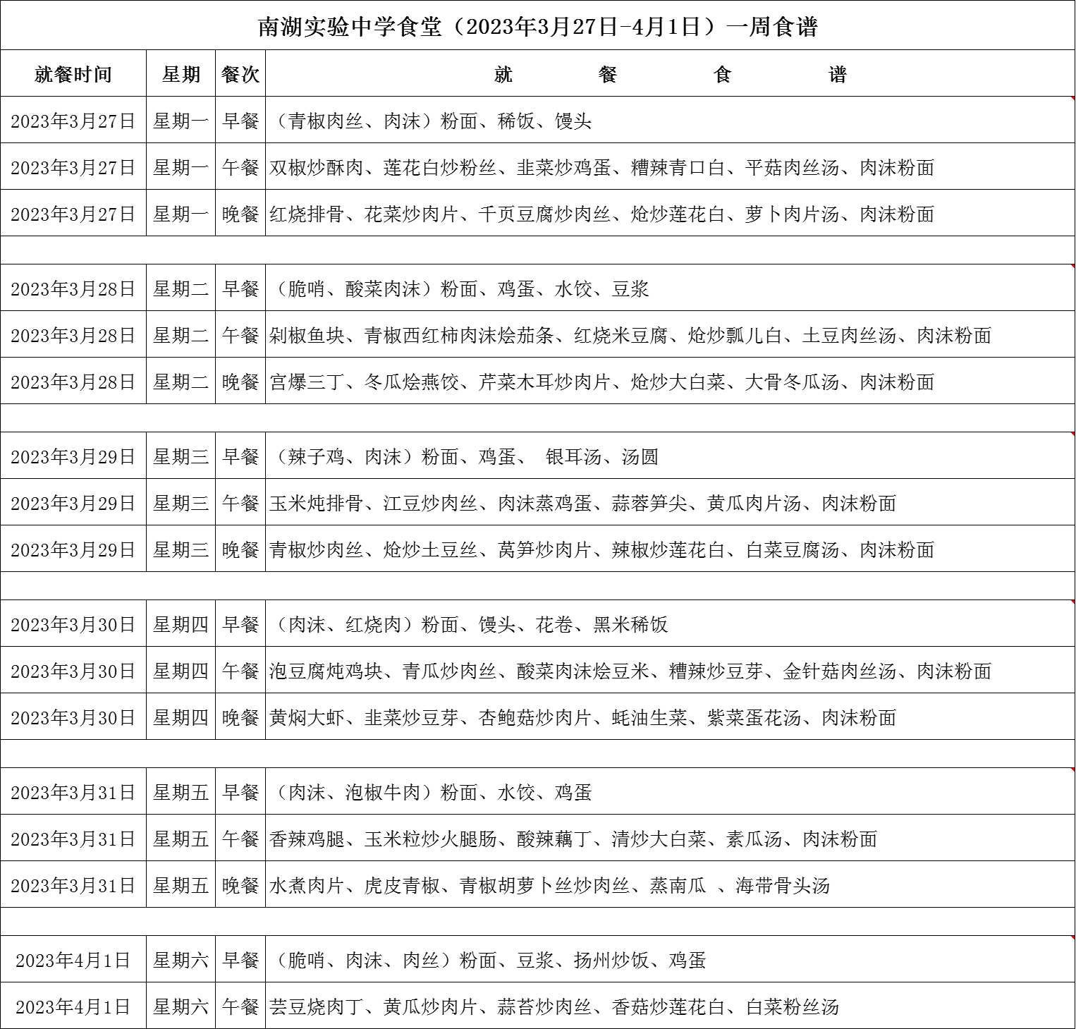 金年会金字招牌至上食堂一周食谱(2023年3月27日-4月1日)
