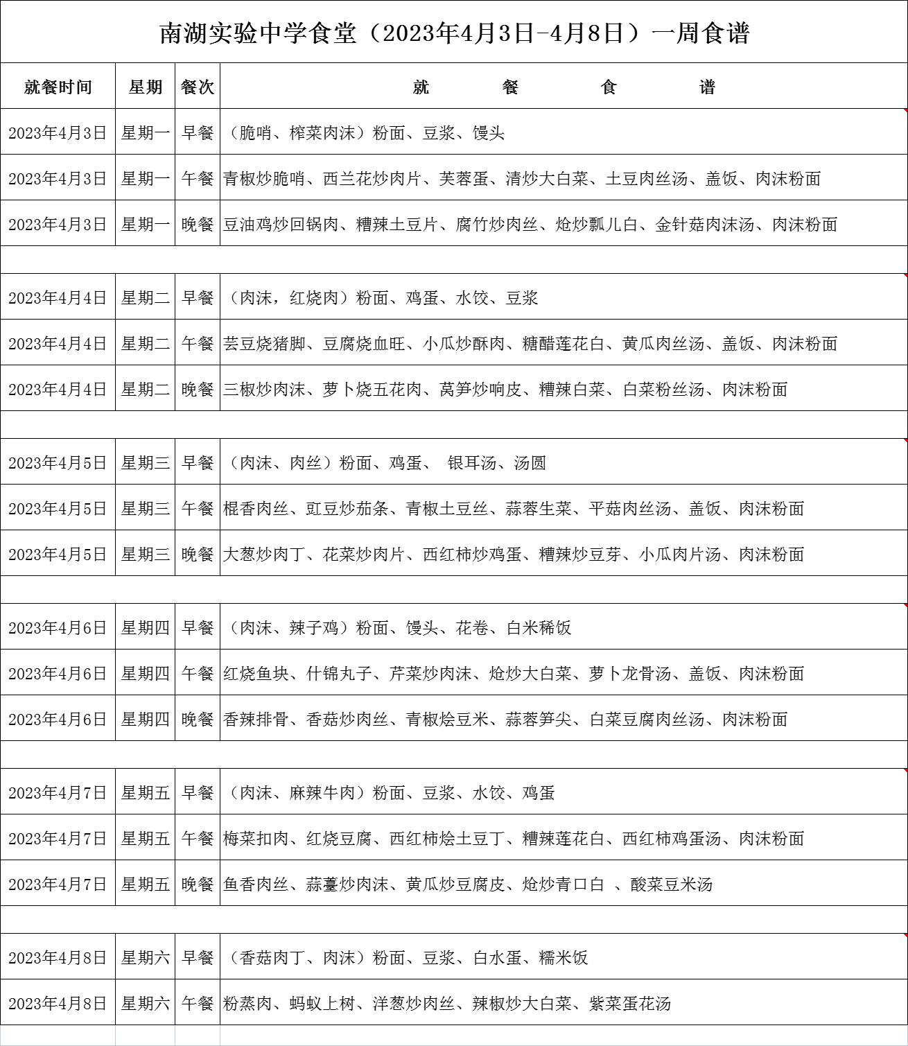 金年会金字招牌至上食堂一周食谱(2023年4月3日-4月8日)
