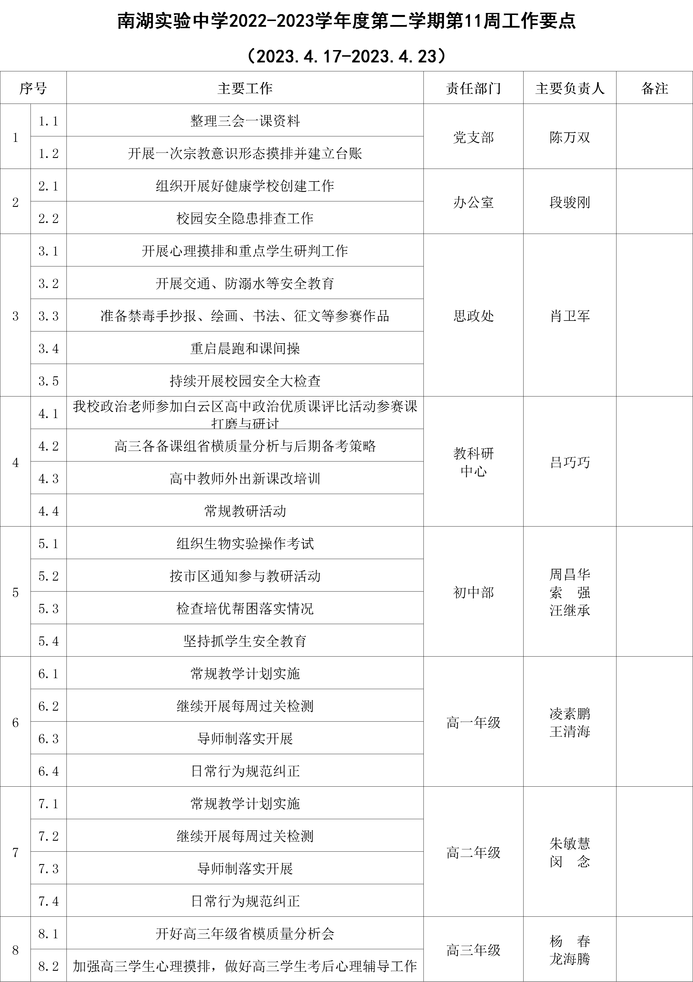 金年会金字招牌至上2022-2023学年度第二学期第11周工作要点