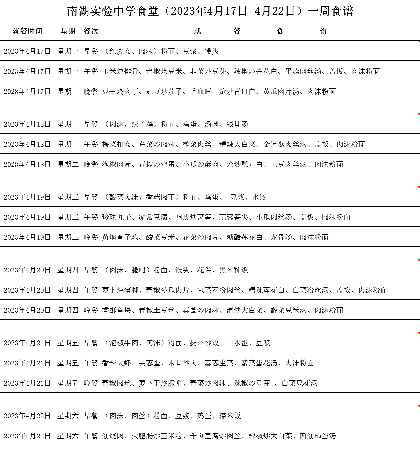 金年会金字招牌至上食堂一周食谱(2023年4月17日-4月22日)