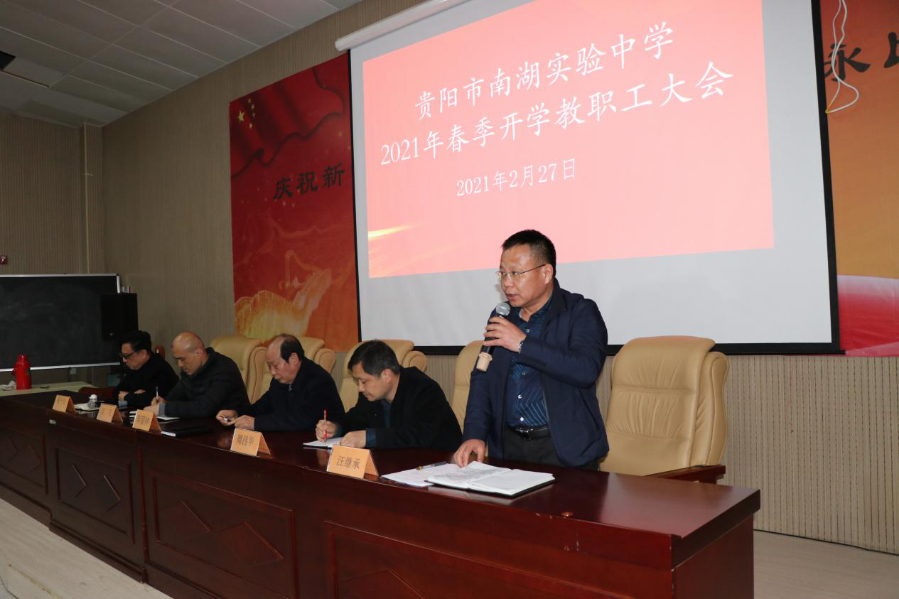 2月27日下午5:00时,我校在学校阶梯教室召开了2021年春季开学工作大会。全校教职工170余人参加了大会。大会由副校长董平安主持,校长李望林作了新学期工作主要的工作报告,副校长汪继承就开学学生入学进校门的防疫工作及接待工作和上好春季学期“开学第一课”作了安排。