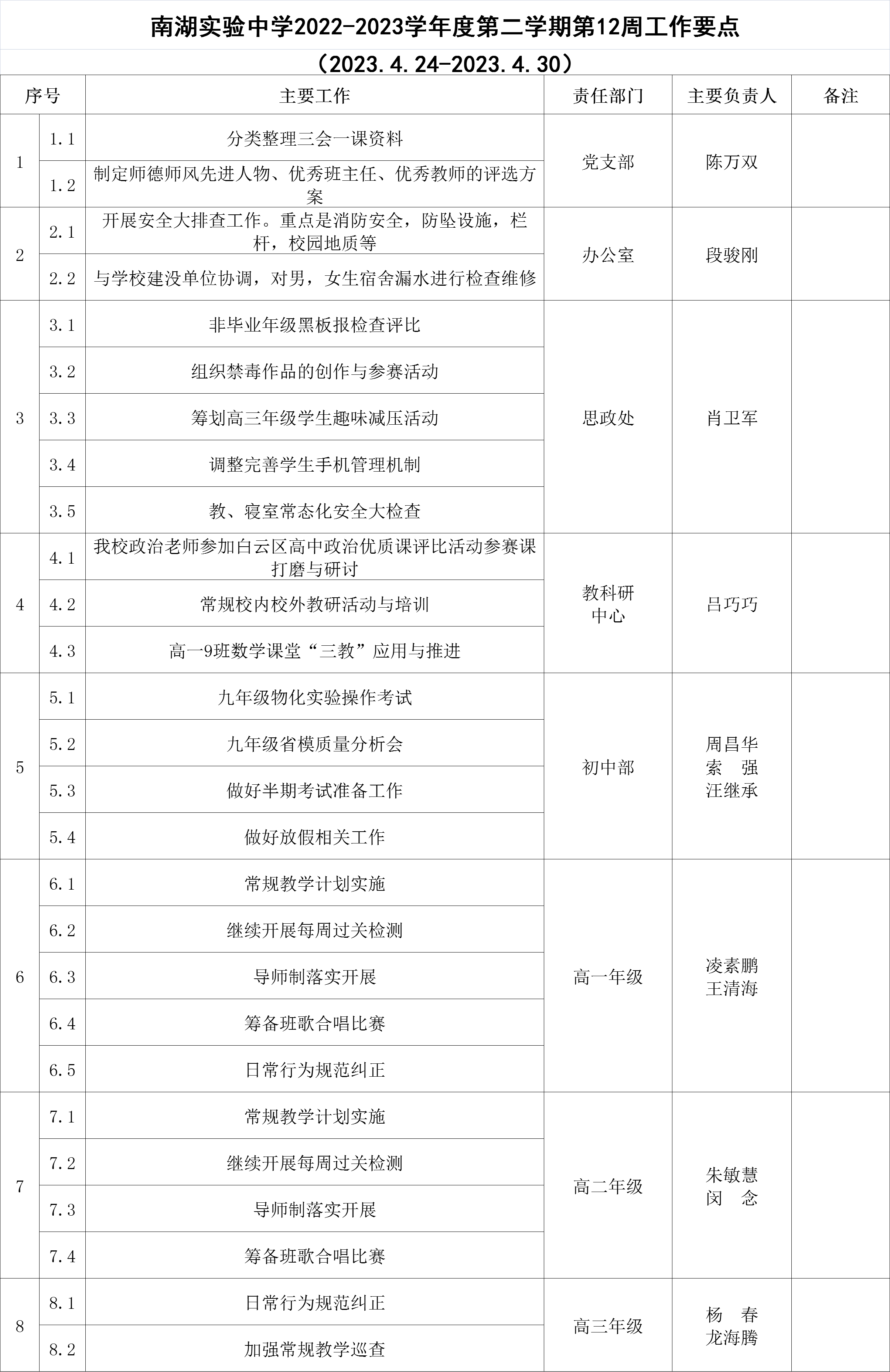 金年会金字招牌至上2022-2023学年度第二学期第12周工作要点