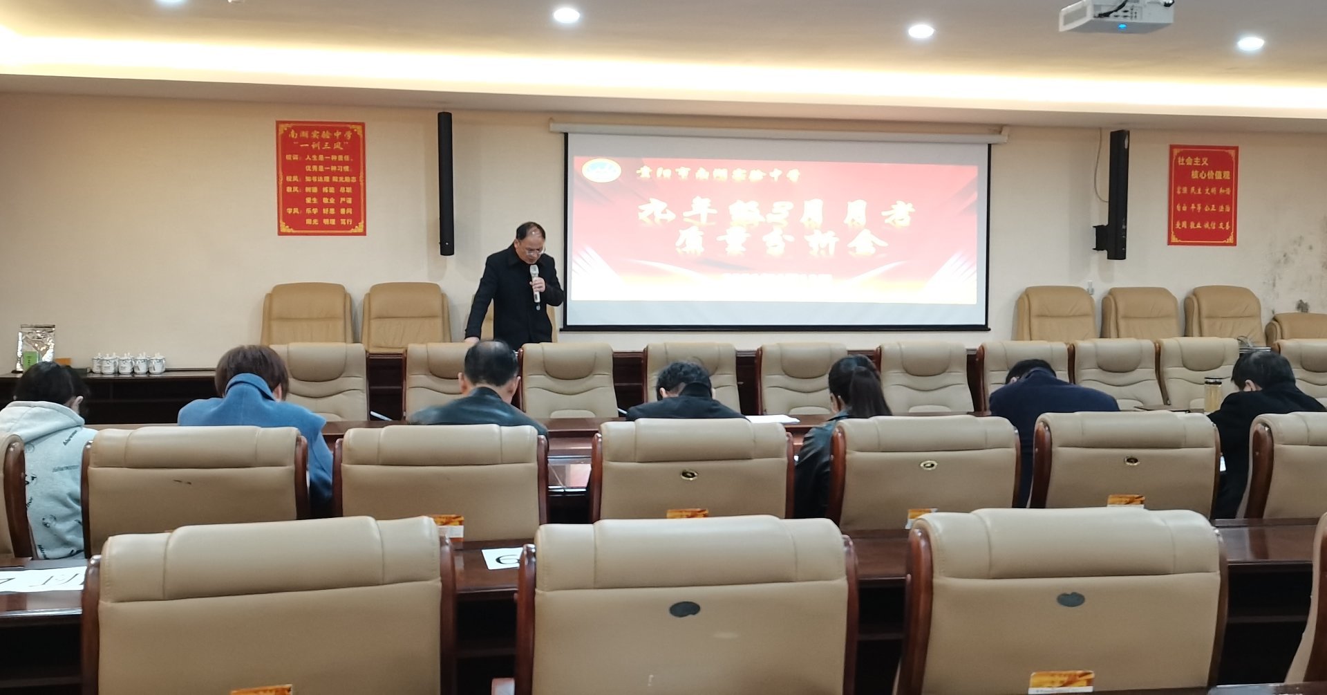 2021年4月13日下午16:00,我校初中部九年级在学校四楼会议室召开了九年级月考质量分析会,会议由周昌华校长主持,李望林校长、索强副校长、刘宗强教学顾问以及九年级全体老师参加了会议。