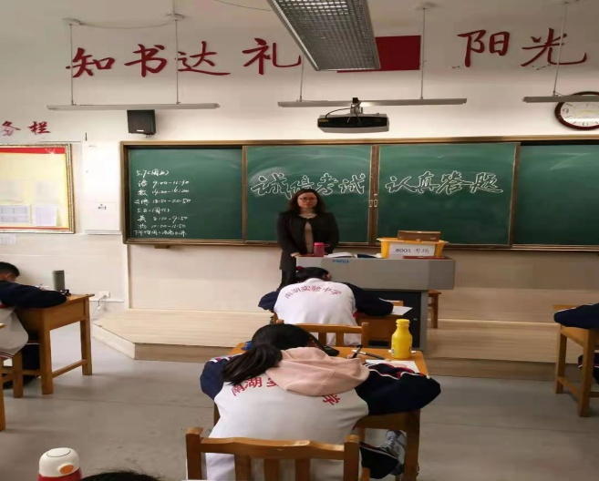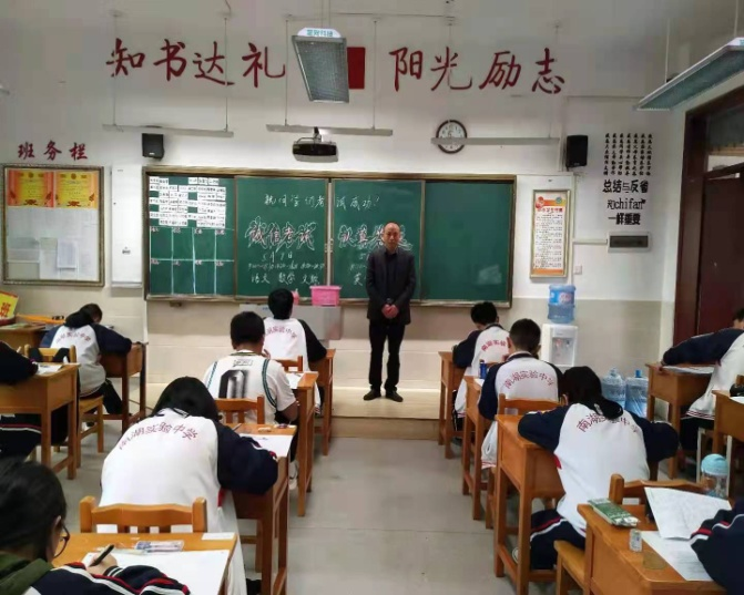 家长参与监考,是我校办学以来一直坚持的办法,目的是向家长展示我校教师务实、认真的工作作风及学生诚信应考的良好考风,目前七八年级半期考试正紧张有序地进行着。