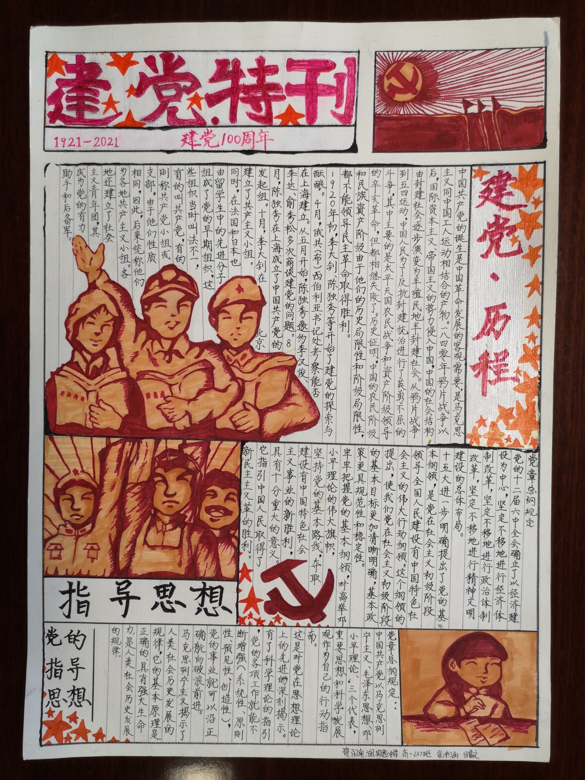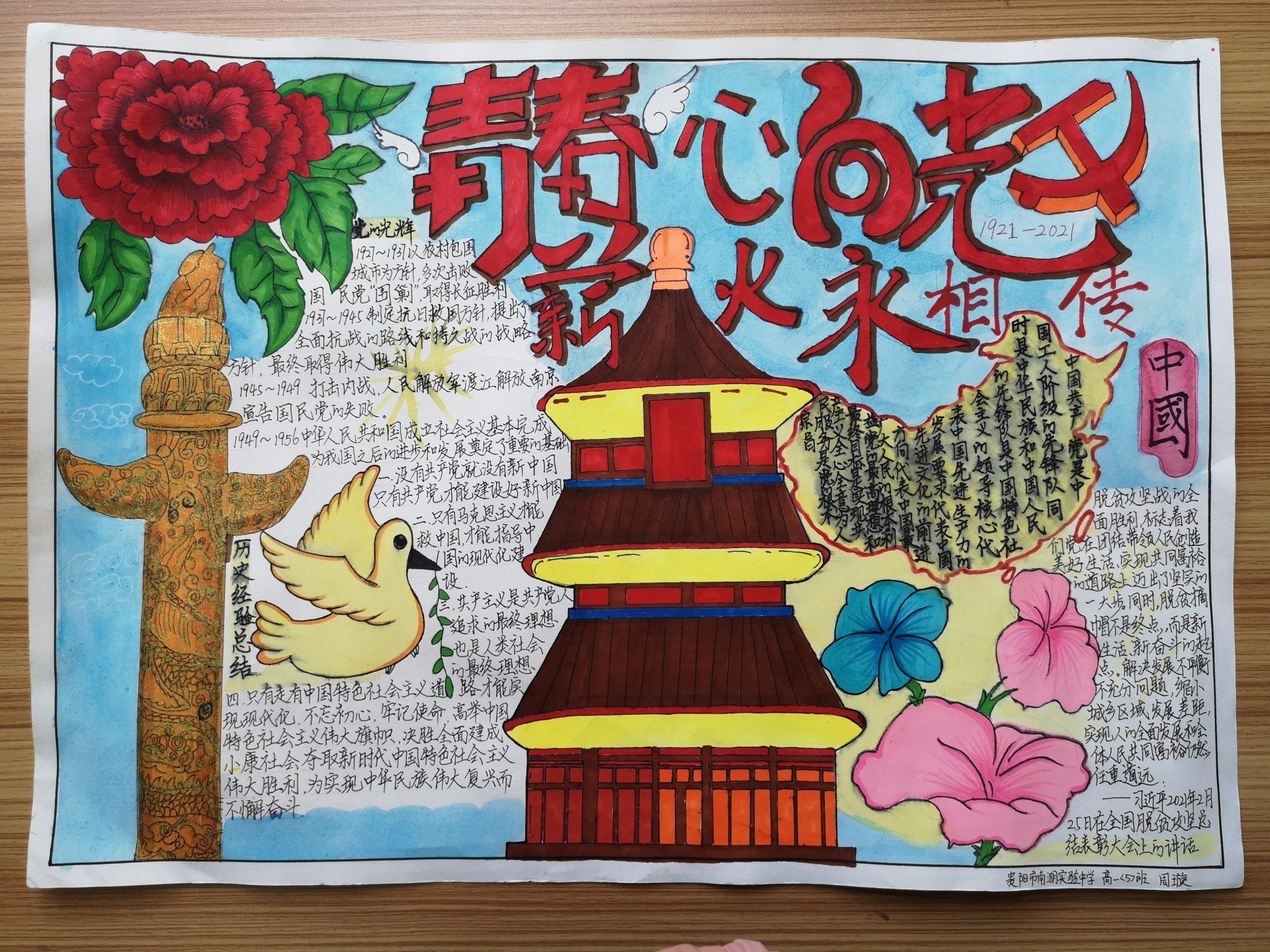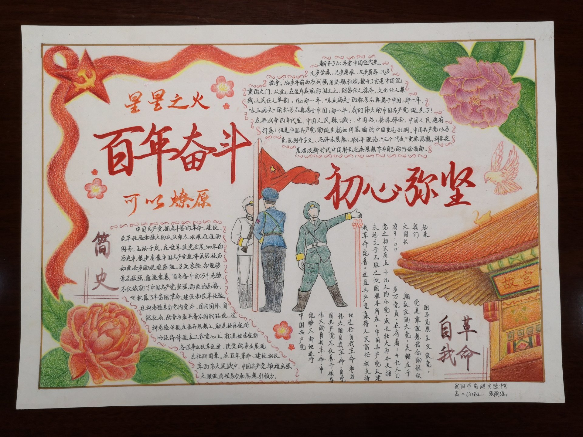活动得到了同学们的热烈响应,他们利用课余时间查阅相关文献资料,精心编排设计,制作了一幅幅紧扣主题、美观大方、富有创意的画作,表达了他们热爱中国共产党、热爱祖国、热爱人民的情怀,展示了他们朝气蓬勃的精神风貌。