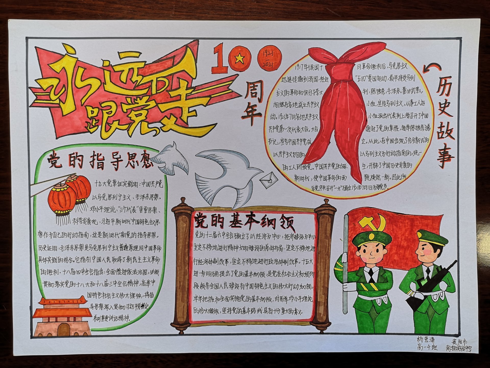为引导广大青少年传承红色基因,让他们从党史教育活动中吸取无穷的精神力量,激励他们为实现中华民族伟大复兴而奋斗。近日,我校根据市区两级教育主管部门相关文件精神,开展了以“党在我心中,启航新征程”为主题的绘画、手抄报制作活动。