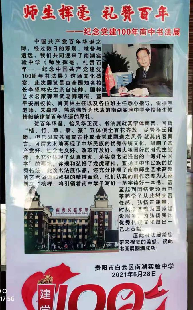 为了庆祝中国共产党诞生100周年,我校师生书法展在郭军武、雷震宇等老师的精心组织下,经过一个月的紧张筹备,于6月5日闪亮登场。