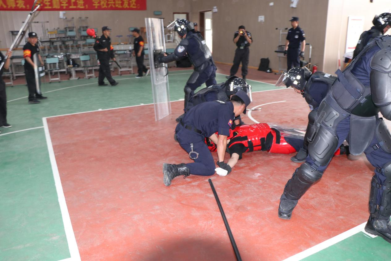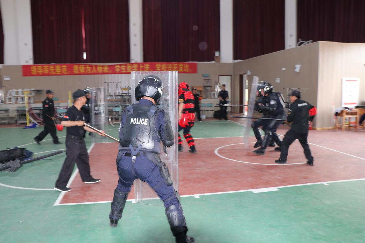 为了有效防范发生的暴力劫持事件,加强师生教职员工面对突发恐怖事件的防范意识,提高师生教职员工面对恐怖事件的合理处理、自护自救及保护学生有效逃生避险的能力,最大限度的减少因突发恐怖事件造成的人员伤害,确保我校师生的人身安全,切实做好“平安校园”建设,营造安全、和谐的育人环境。2021年6月7日,我校特请郑州市公安局白云分局特巡警大队的民警来到我校进行了一场别开生面的“实战”反恐演习。