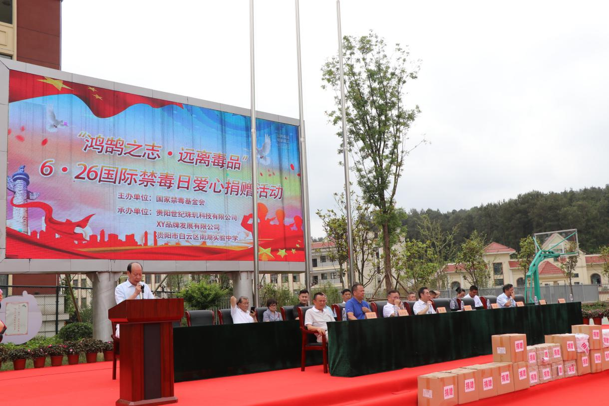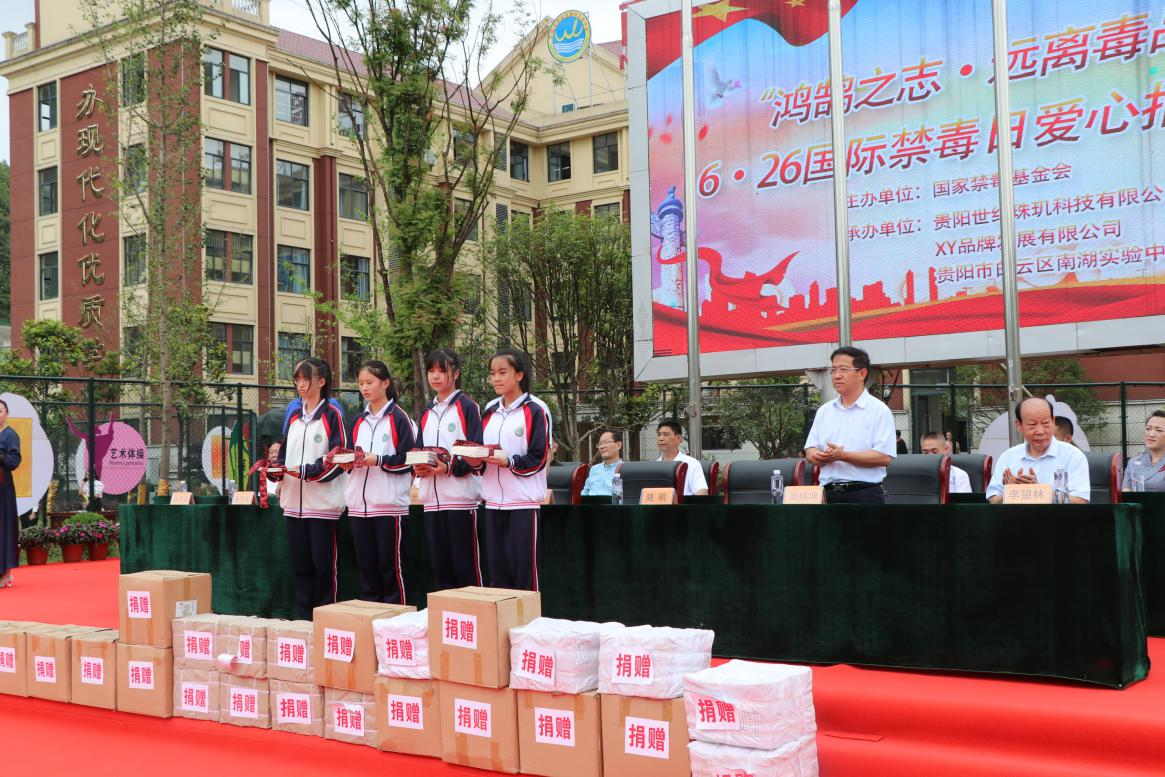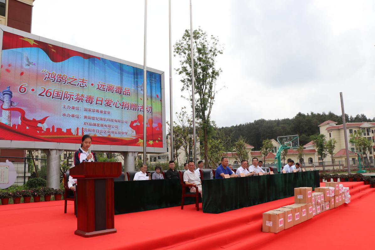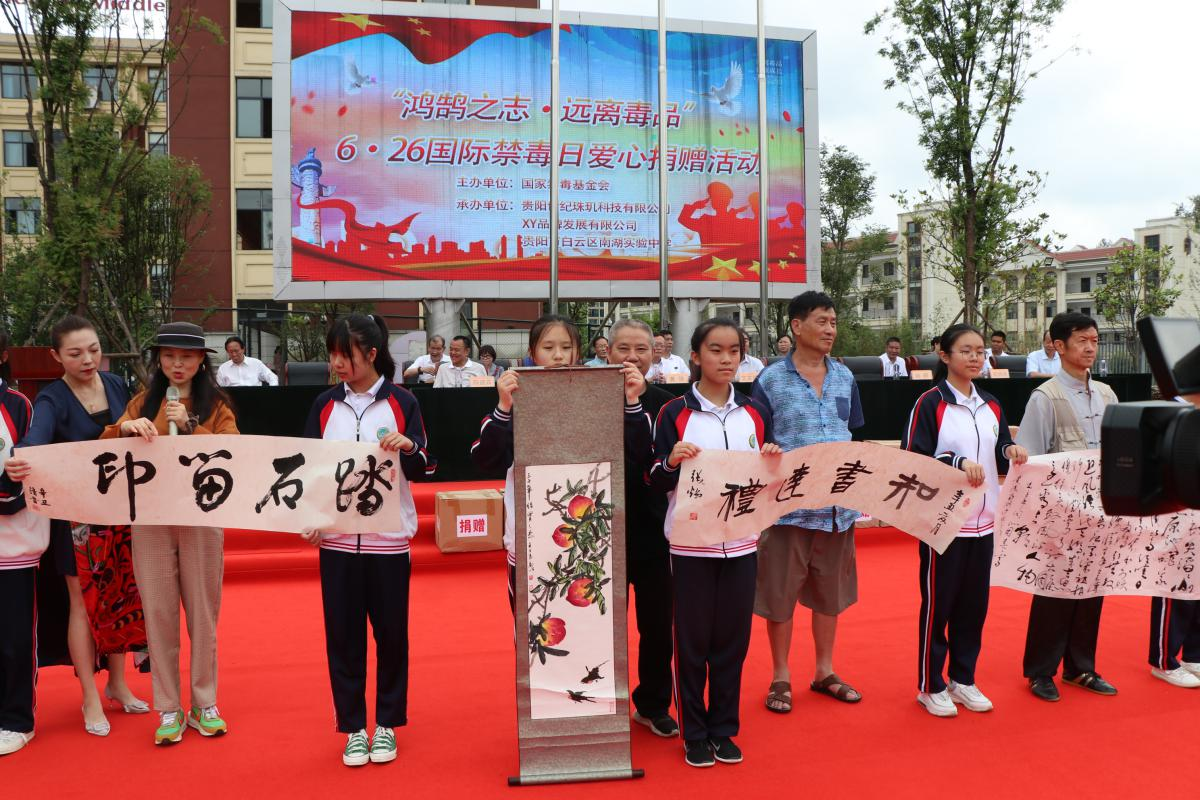 6月25日上午10:50,我校在学校运动场举行第34个国际禁毒日活动。参加本次禁毒活动的有校长李望林、初中部七、八年级的全体师生以及中国禁毒基金会、贵州省公安厅禁毒总队、中原区委、区教育局、中国民主建国会贵州分会以及郑州世纪珠玑科技有限公司、XY品牌发展有限公司等有关领导和来宾。以及省书画协会的书法家、画家10多人。