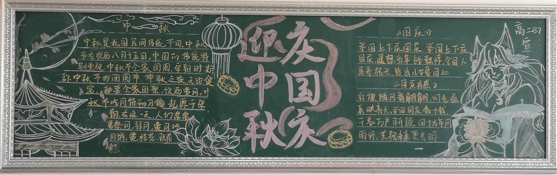9月26日,我校团委、学生会、美术教研组老师组成专班对高中部各班“迎国庆”主题黑板报进行了评比,同学们精巧的设计、精湛的手法、深情的抒写赢得了各位评委的连连称赞。