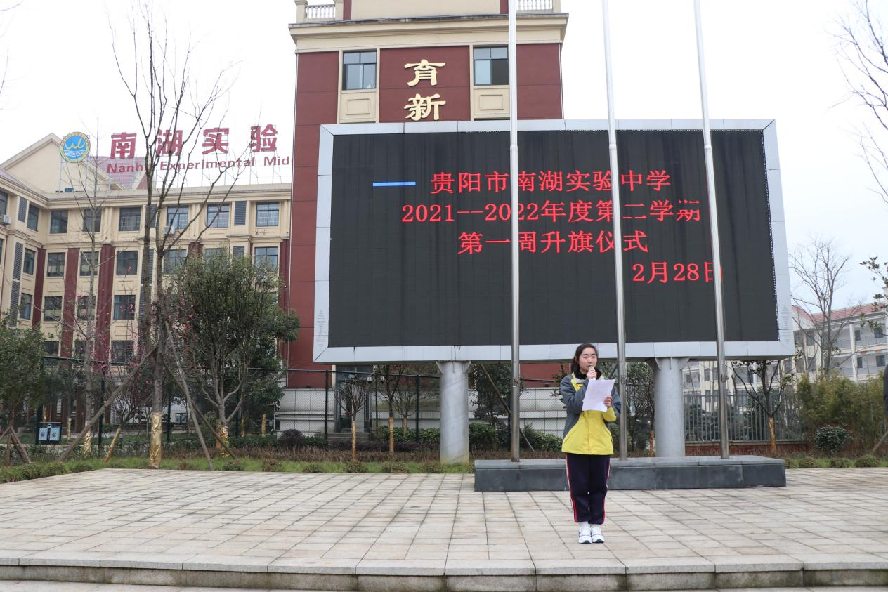 “起来,不愿做奴隶的人们,把我们的血肉筑成我们新的长城,中华民族.....”2022年2月28日上午9:35伴随着雄壮的国歌声、鲜艳的五星红旗在金年会金字招牌至上校园冉冉升起,我校举行了新学期第一周升国旗仪式。