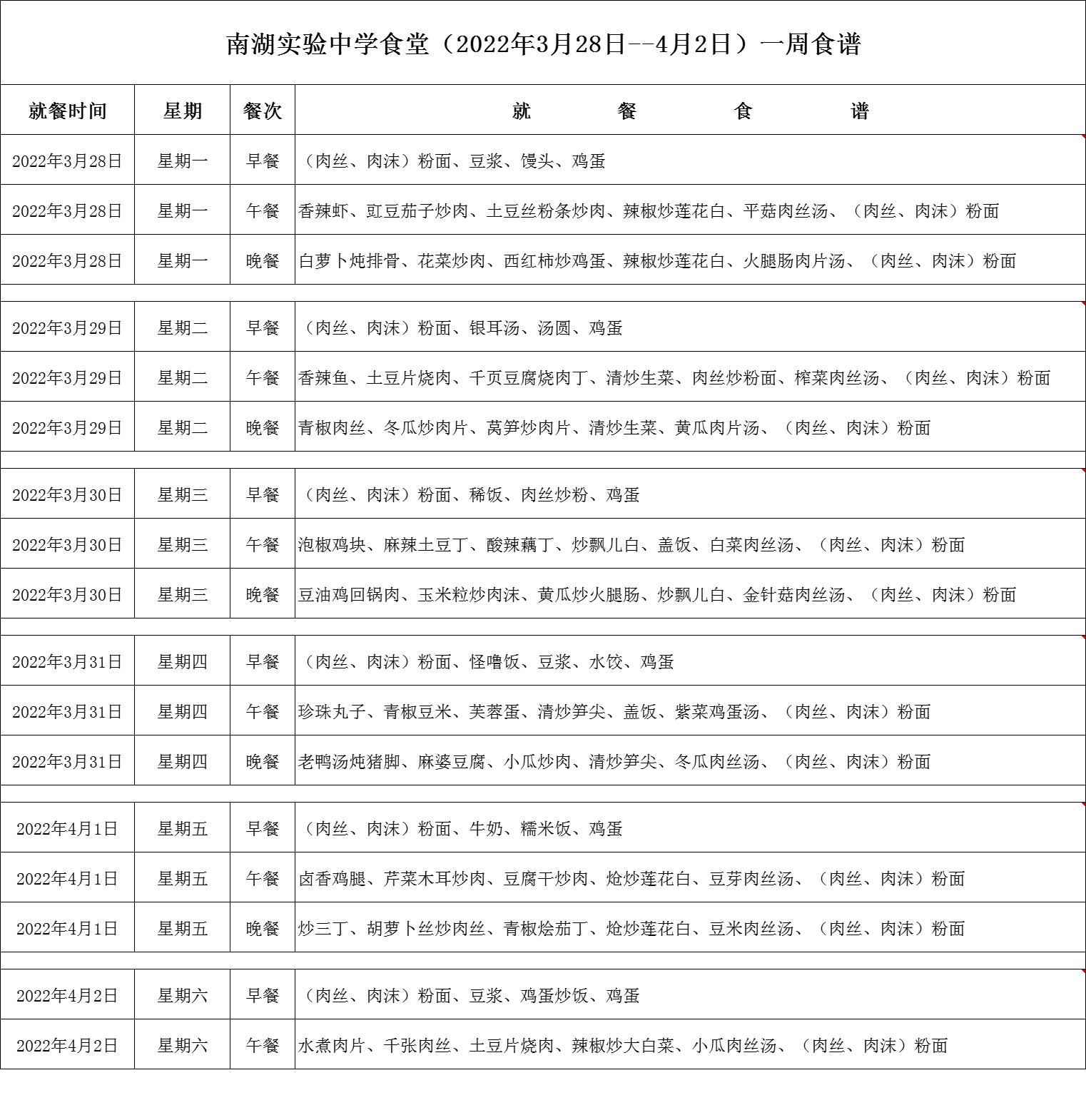 金年会金字招牌至上食堂一周食谱(2022年3月28日--4月2日)
