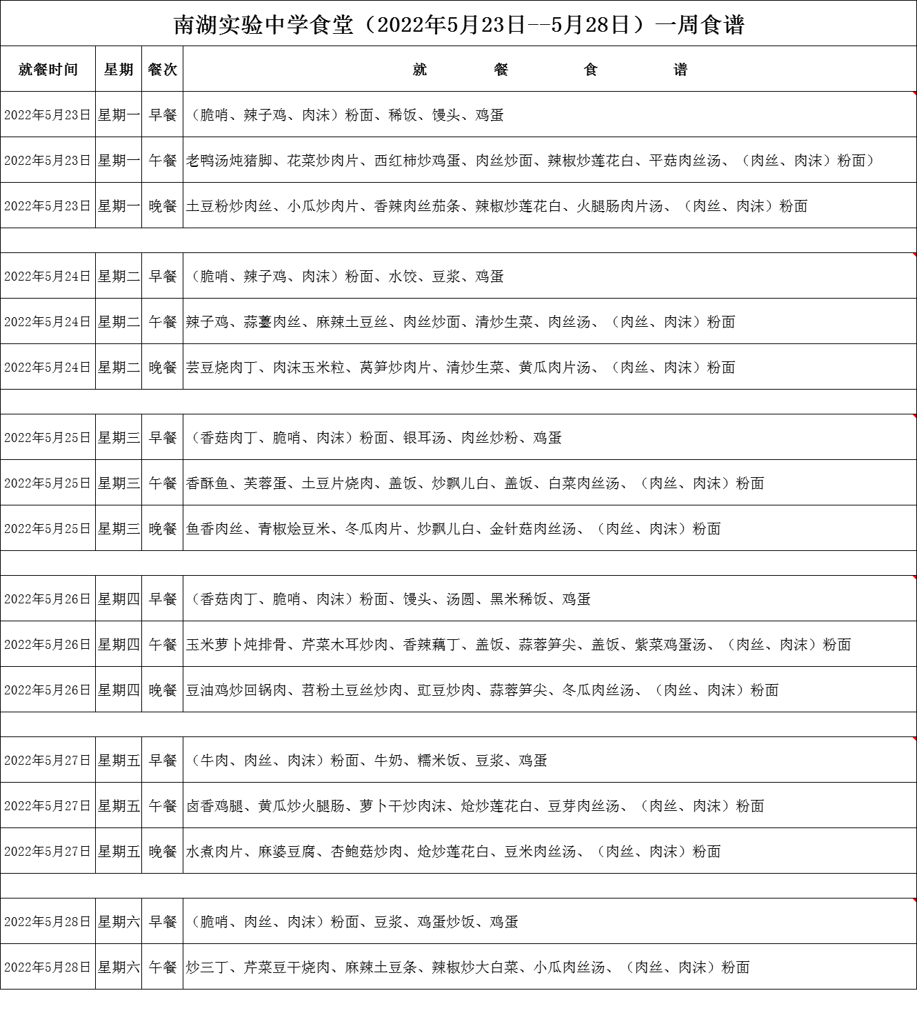 金年会金字招牌至上食堂一周食谱(2022年5月23日--5月28日)